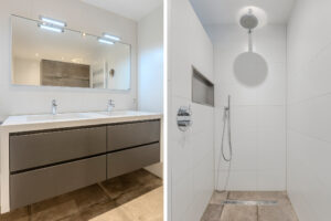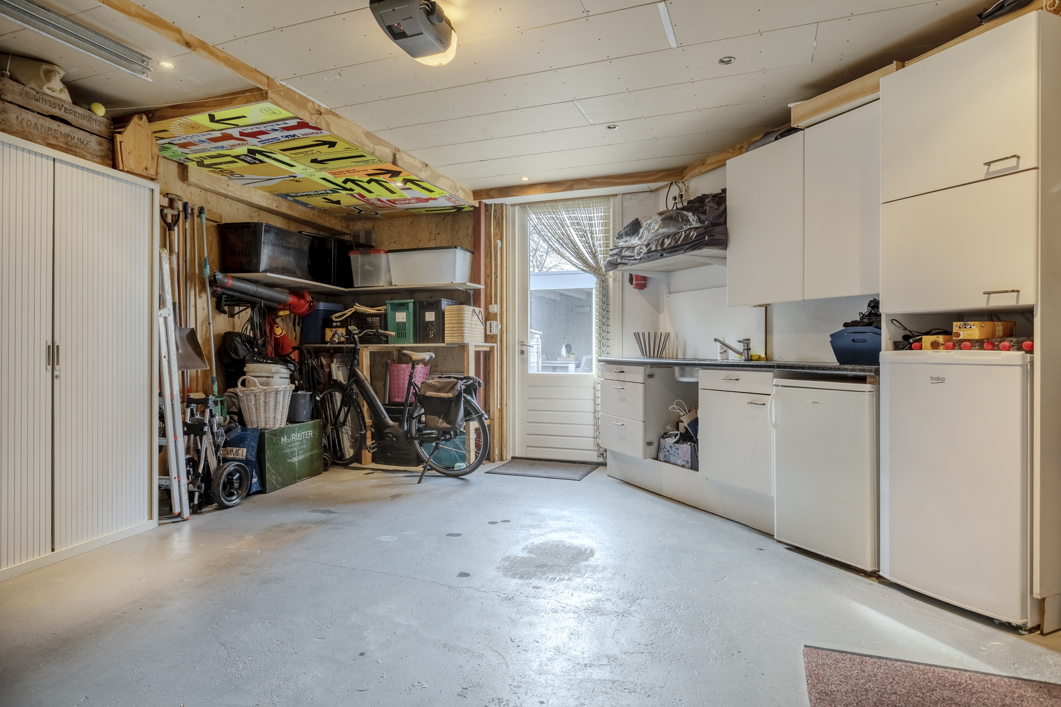 Vanuit de keuken is er direct toegang tot de grote, inpandig bereikbare garage van maar liefst 29m². De garage is voorzien van een op afstand bedienbare sectionaal deur met daarnaast een praktische aparte loopdeur naar de eigen oprit. Aan de achterzijde van de garage is er ook een loopdeur naar de achtertuin.