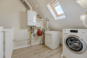 De voorzolder en zolderslaapkamer zijn eveneens voorzien van laminaat.