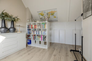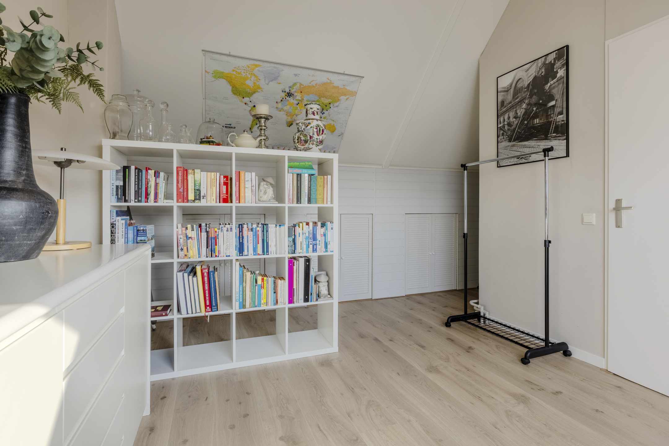 Voorzolder met dakraam, opstelplaats van de vaillant HR-combiketel (ca. 2013), unit tbv de mechanische ventilatie, aansluitingen ten behoeve van de wasapparatuur en bergruimte. Volwaardige 4e slaapkamer (ca. 14m²) met tuimeldakraam en veel bergruimte achter schotten.