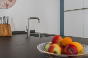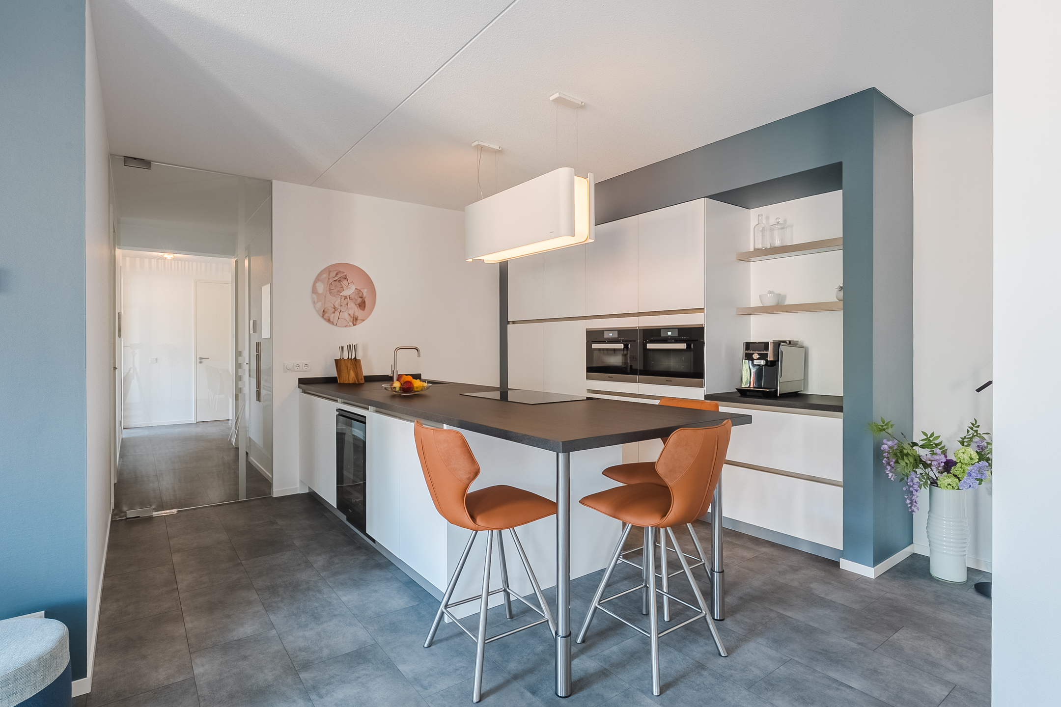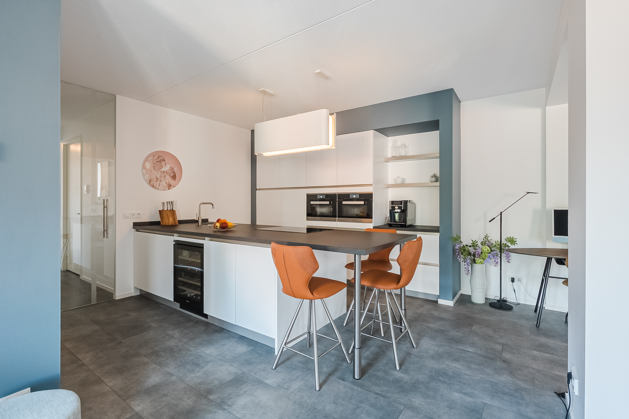 Entree/ontvangsthal, hoogwaardig afgewerkte en in een fraaie kleurstelling geheel betegelde toiletruimte met vrijhangend closet en fontein. Meterkast voorzien van ruim voldoende groepen en glasvezelaansluiting. Ruim opgezette living van maar liefst ca. 67m² met half open keuken, prachtige raampartijen en toegang door middel van een loopdeur naar het balkon van ca. 11m². Vanaf dit balkon is onder andere het Wilhelminakanaal zichtbaar. De luxe, greeploze -keuken in een lichte kleurstelling is voorzien van nagenoeg alle beschikbare hoogwaardige inbouwapparatuur te weten: inductie-kookplaat, combi-stoomoven, oven, design afzuigkap (recirculatie), koelkast, vriezer en een aparte wijnkoelkast.