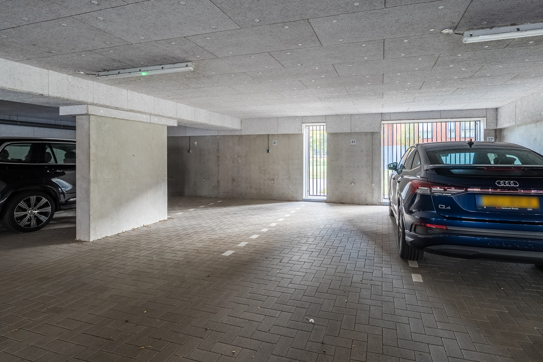 - 2 eigen parkeerplaatsen in de afgesloten parkeergarage op de begane grond.