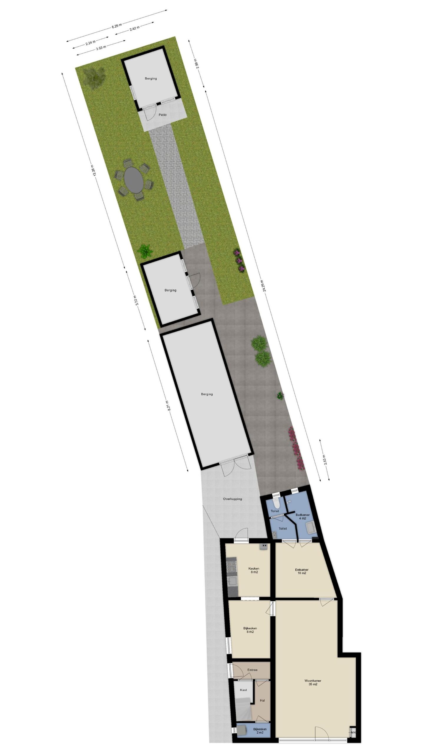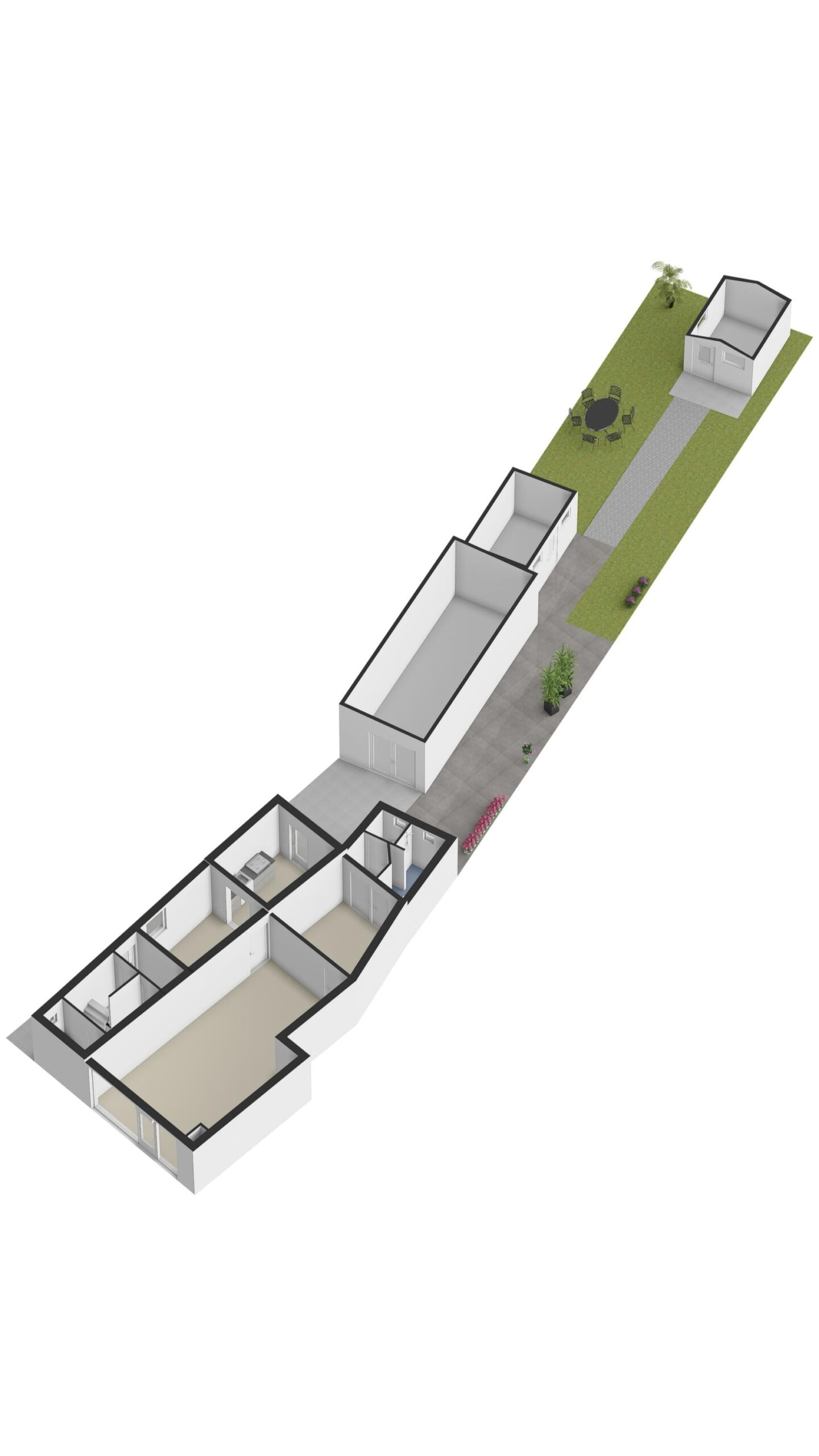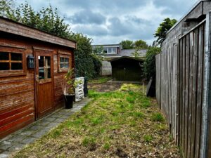 De woning is voorzien van een zeer diepe achtertuin op het zonnige zuiden met diverse ruime bergingen met elektra en een poort aan de zijkant.