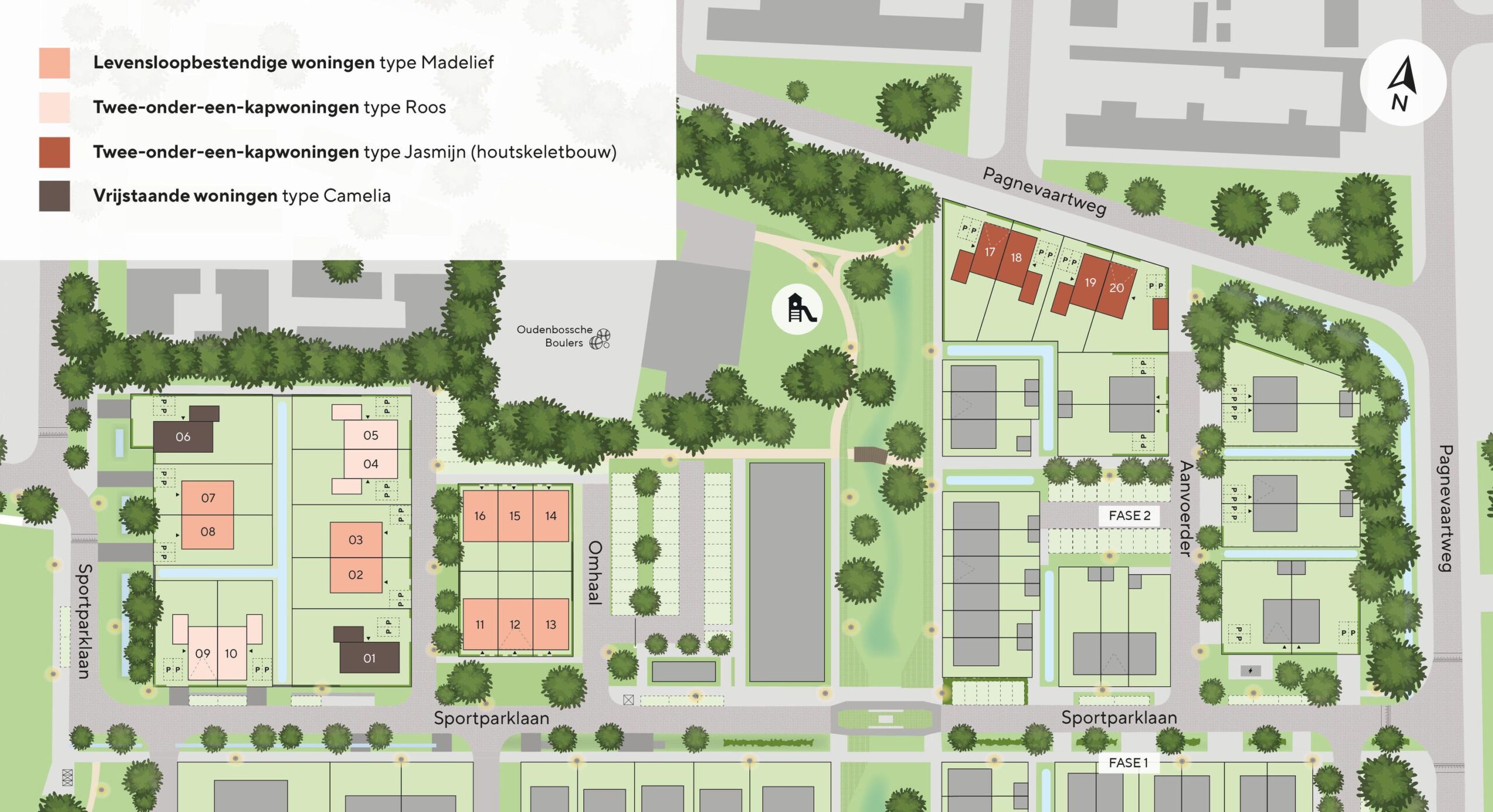 Groene Vaart bestaat uit drie deelprojecten, die elk hun eigen karakter hebben. Fase 1 en 2 zijn reeds verkocht en de verkoop van Fase 3 is inmiddels gestart. Deze laatste fase bestaat uit 20 schitterende woningen, die vernoemd zijn naar inheemse planten die van nature in de omgeving voorkomen. Of je nu gaat voor een vrijstaande woning type Camelia, een royale twee-onder-één kap woning type Roos en Jasmijn of een levensloopbestendige woning type Madelief: hier vind je jouw droomhuis.