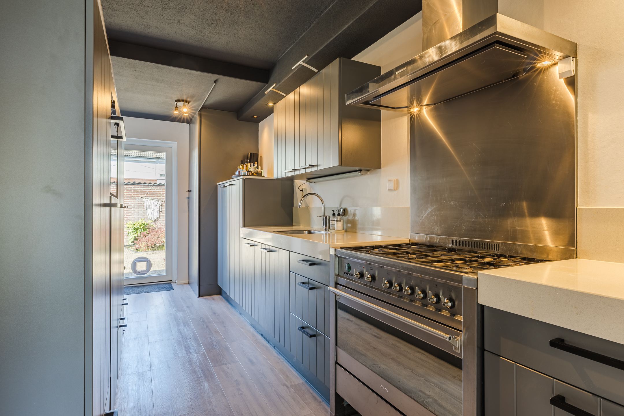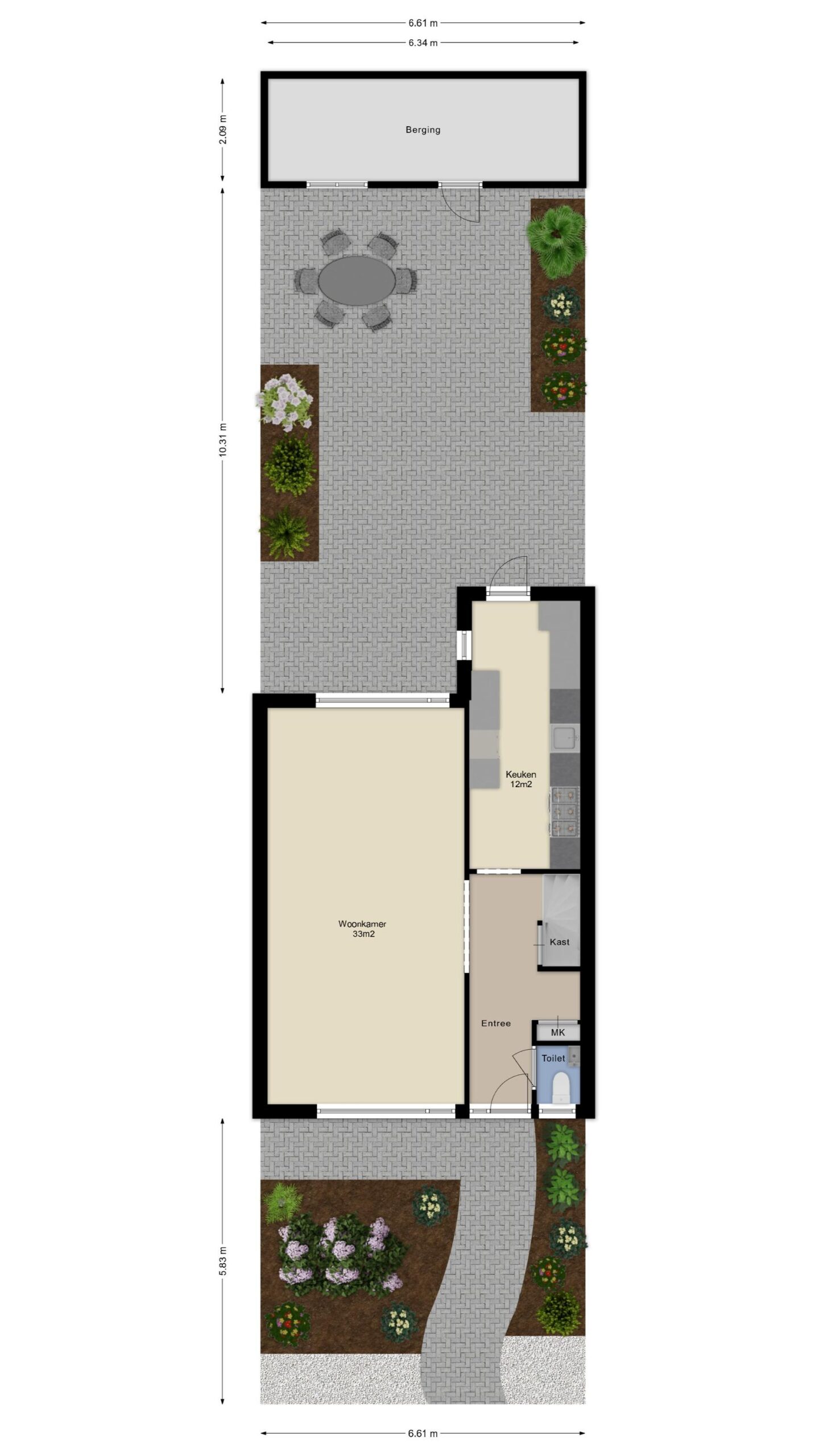- Zonnige achtertuin voorzien van grote berging met poort naar de achterom.