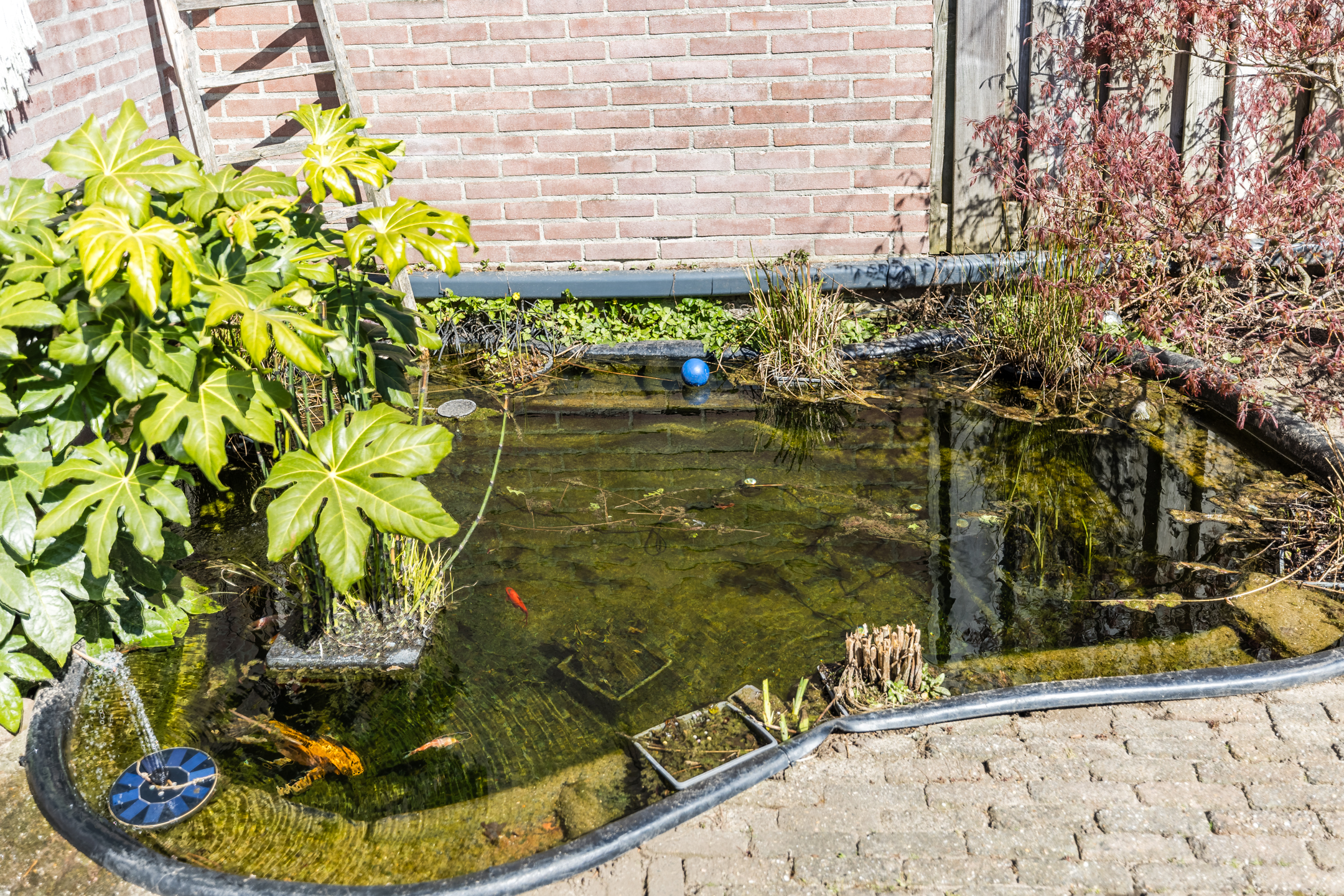 Ruime diepe achtertuin gelegen op het zonnige westen. De achtertuin beschikt over een vijver en geeft toegang tot de grote berging (over de gehele breedte). De berging biedt toegang tot de achterom. Een tuin waar je door de heerlijke ligging lang buiten kan zitten in rust en de zon.