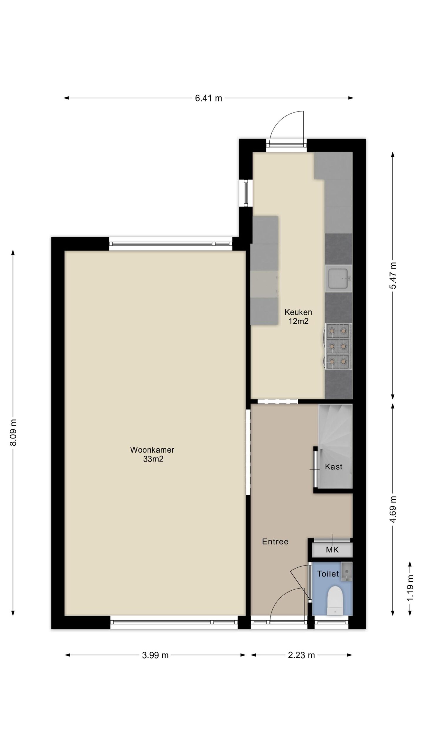 - Kunststof kozijnen en voordeur op de begane grond.