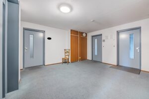 Afgesloten entree met toegang tot de centrale hal. Hier bevinden zich de brievenbussen, het bellenplateau, de lift en het trappenhuis naar de verdiepingen.