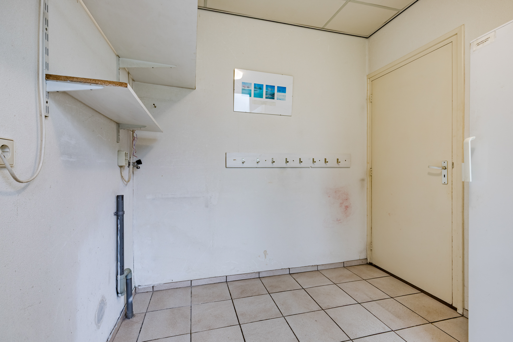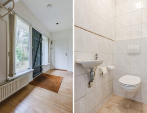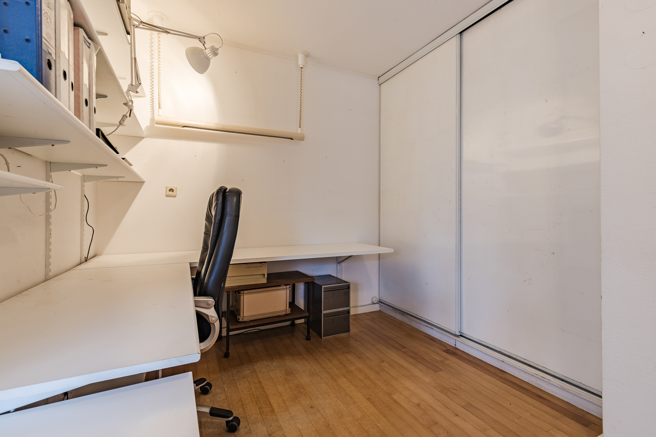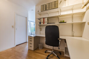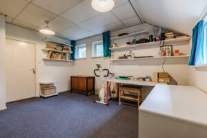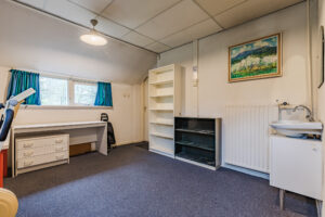 Aan de zijkant van de woning gesitueerde multi-functionele ruimte voorzien van een eigen entree/hal met een vaste kast met daarin de opstelling van de CV-combiketel; kantoor/werkkamer ca. 15 m² met wastafel en toegang tot de living van de woning.