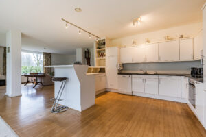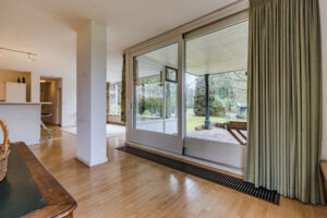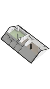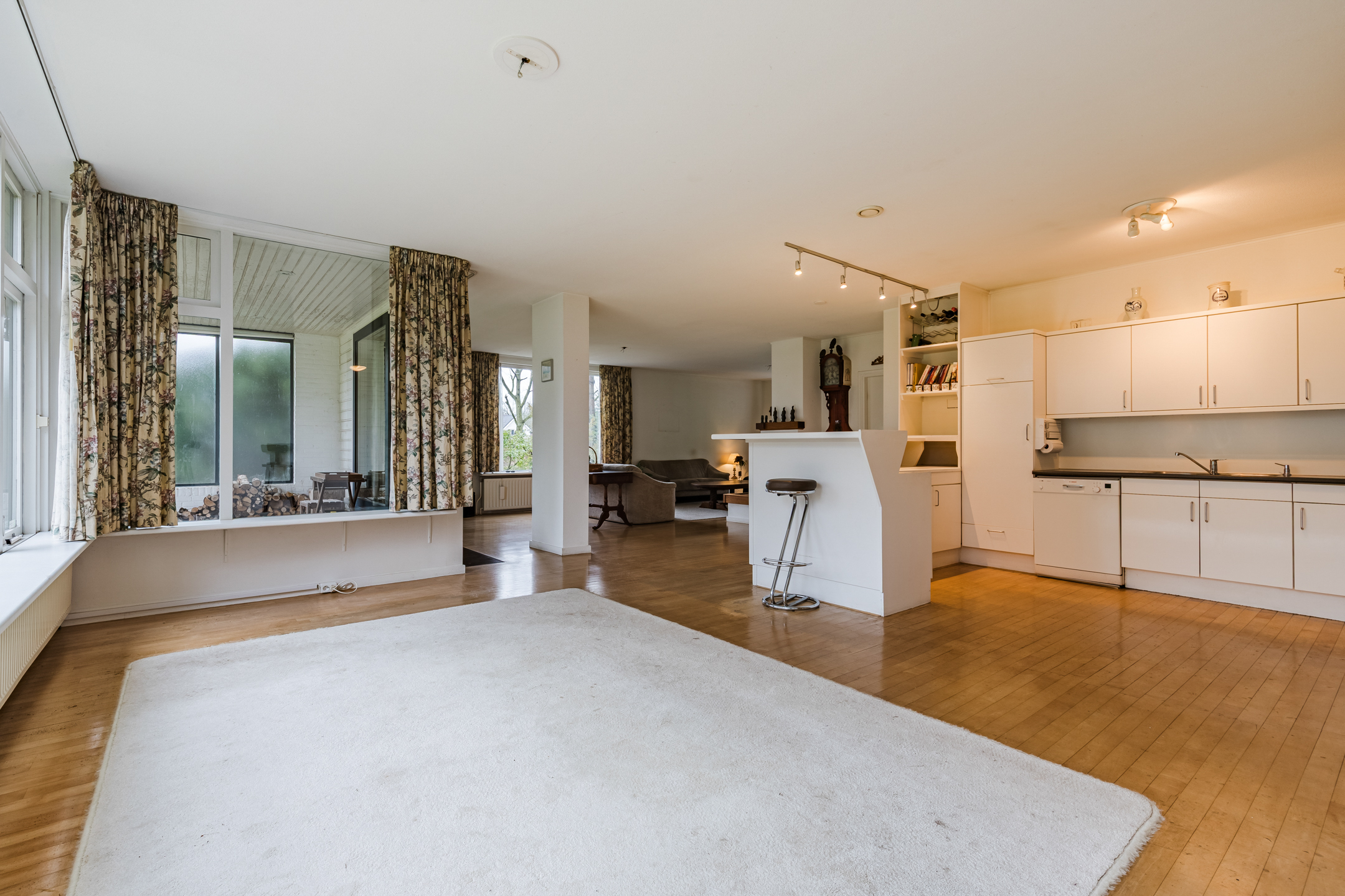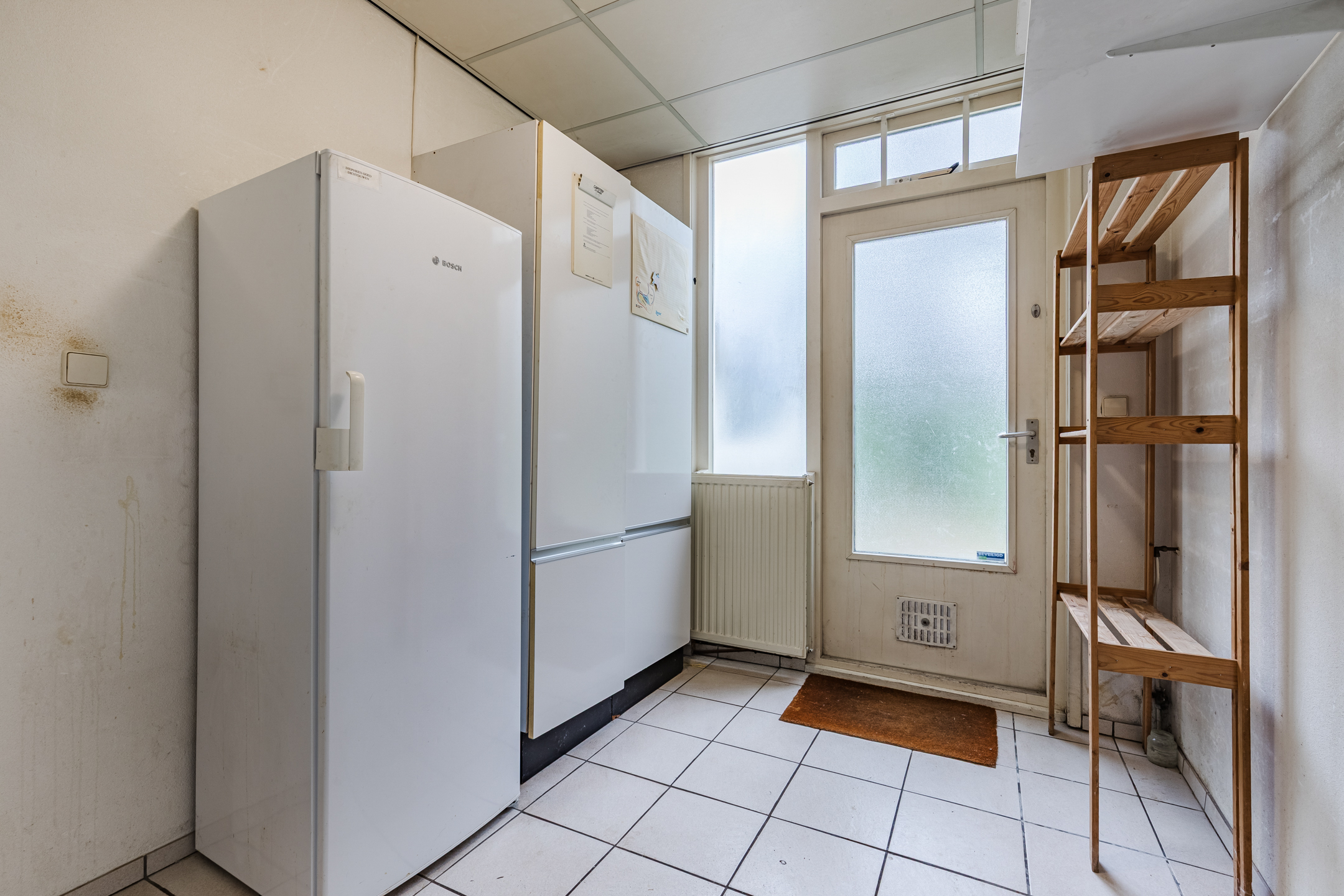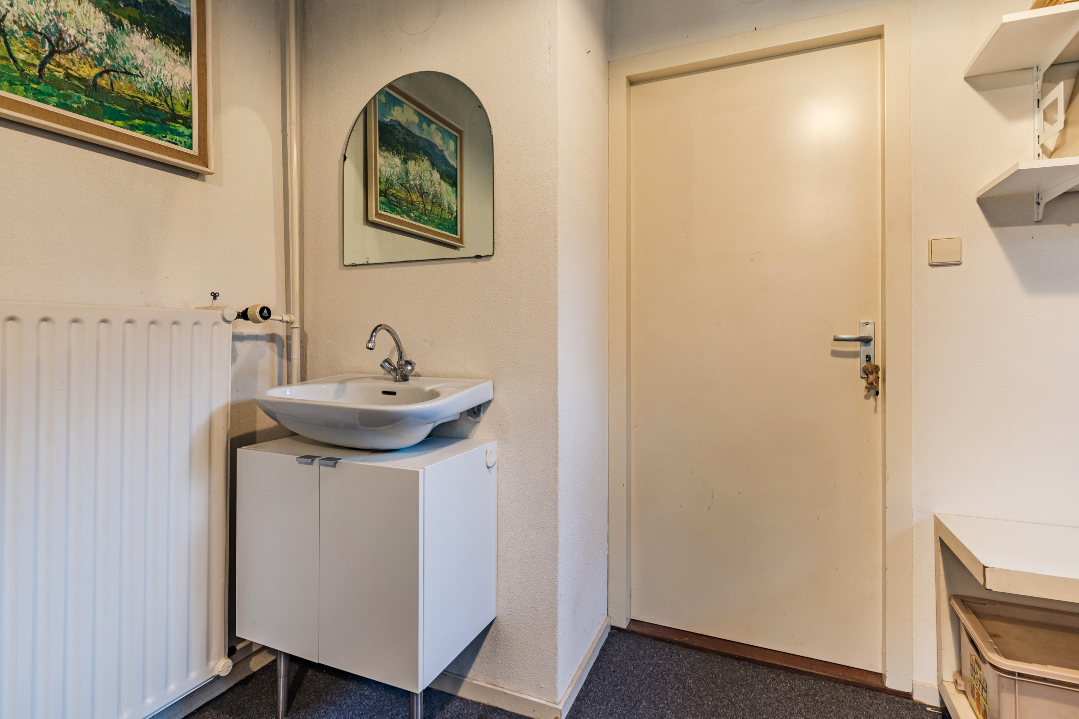 Aan de zijkant van de woning gesitueerde multi-functionele ruimte voorzien van een eigen entree/hal met een vaste kast met daarin de opstelling van de CV-combiketel; kantoor/werkkamer ca. 15 m² met wastafel en toegang tot de living van de woning.