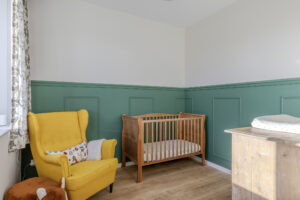 Voorslaapkamer circa 14m² en een achterslaapkamer circa 10m² met fraaie lambrizering. Beide slaapkamers zijn voorzien van een laminaatvloer.