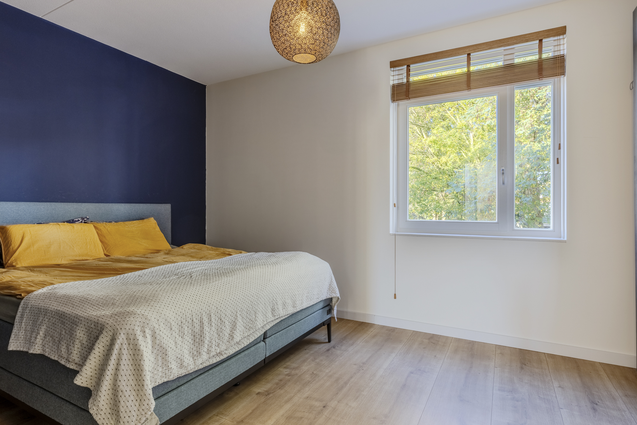 Voorslaapkamer circa 14m² met laminaatvloer en tevens een hoge nok.