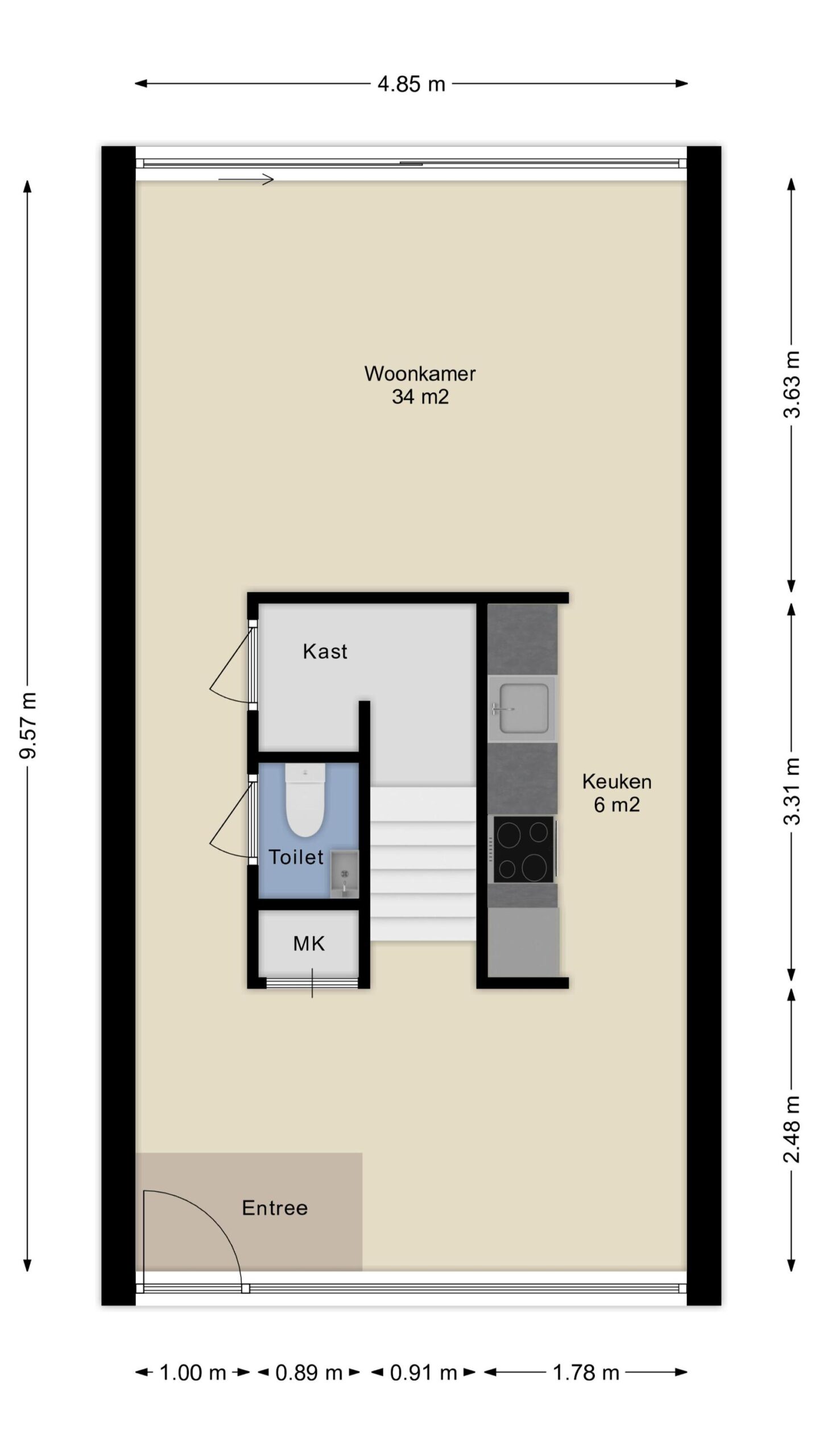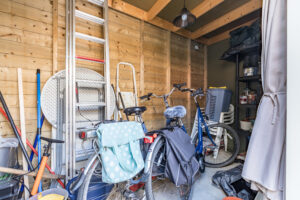 Diepe en praktische trapkast voor de garderobe en extra bergruimte.
