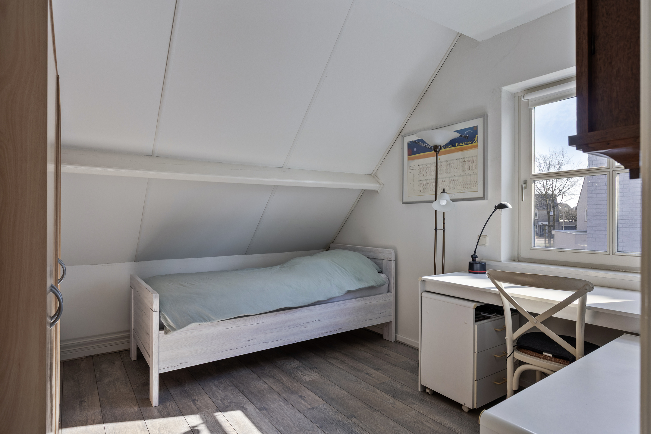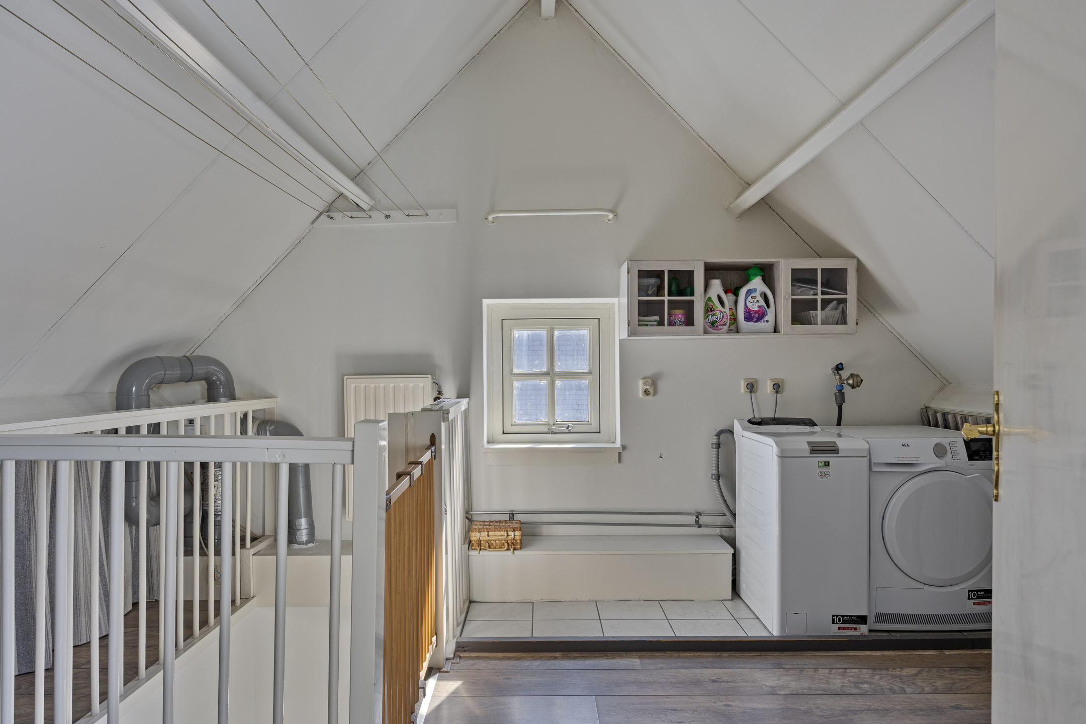 Middels een vaste trap komt u aan op de zolderverdieping. Op de voorzolder treft u de mechanische ventilatie en de aansluitingen voor de wasapparatuur. Op de tweede verdieping vind u de vierde slaapkamer, ideaal als logeerkamer, thuiskantoor of speelruimte. De zolder is eveneens voorzien van een laminaatvloer.