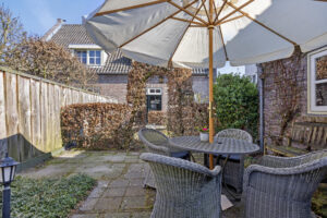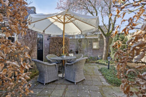 De fraai aangelegde achtertuin ligt op het westen. Dit betekent dat je na een lange werkdag nog tot in de late uurtjes kunt genieten van de zon. De tuin heeft daar verschillende hoekjes voor en biedt veel privacy.
