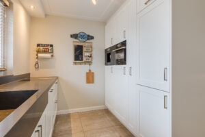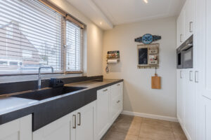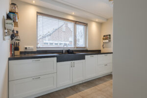 De keuken is volledig op maat gemaakt in 2019 aan de voorzijde van de woning is helemaal compleet en luxe uitgerust met onder andere een Quooker, Bora kookplaat, combi-oven, inbouw koffiemachine, koelkast, vriezer en een vaatwasser.