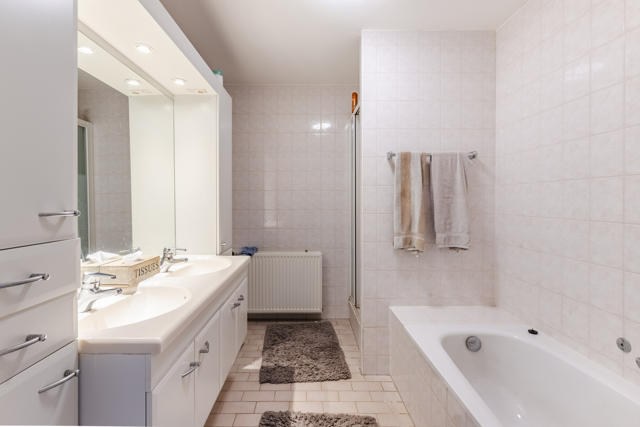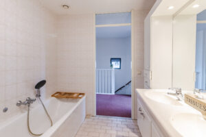 Buiten de ruime slaapkamers treft u ook een royale badkamer op deze verdieping. Deze badkamer is van alle gemakken voorzien en beschikt dan ook over een ligbad, dubbele wastafel met meubel, radiator, douchebak en mechanische ventilatie.