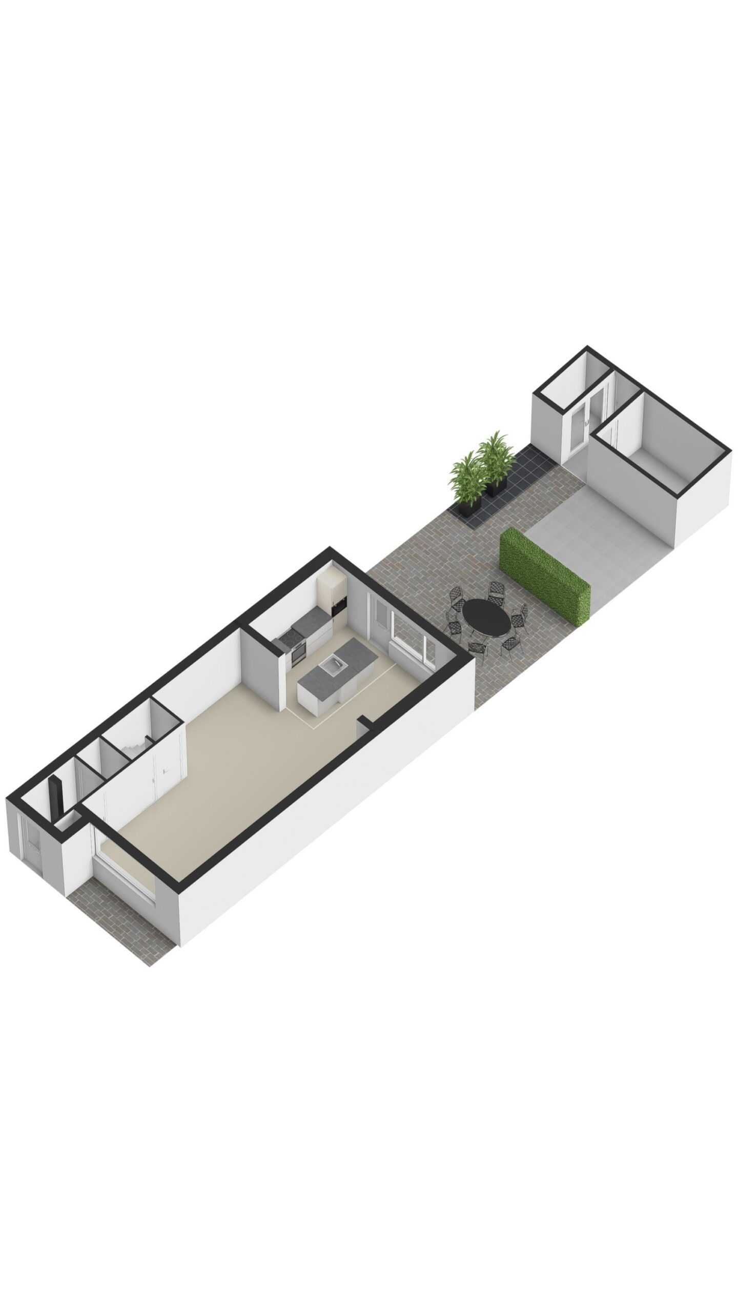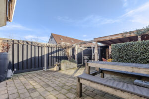 Direct achter de woning bevindt zich een zonwering.