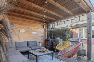 In de achtertuin is daarnaast een gezellige houten veranda aanwezig.