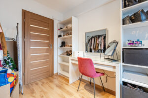 De overloop geeft toegang tot drie slaapkamers, de badkamer en een vaste kast.