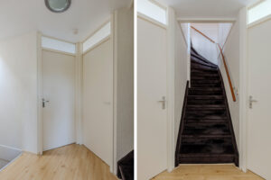 De hal geeft toegang tot de woonkamer en trapopgang naar de eerste verdieping.