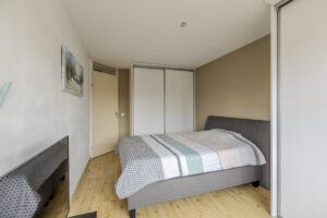 Voorslaapkamer circa 15m² met twee vaste kasten, rolluiken en een deur naar het balkon, voorslaapkamer circa 11m² met vaste kast en een achterslaapkamer circa 6m². Alle slaapkamers zijn voorzien van een laminaatvloer en strakke wandafwerking.