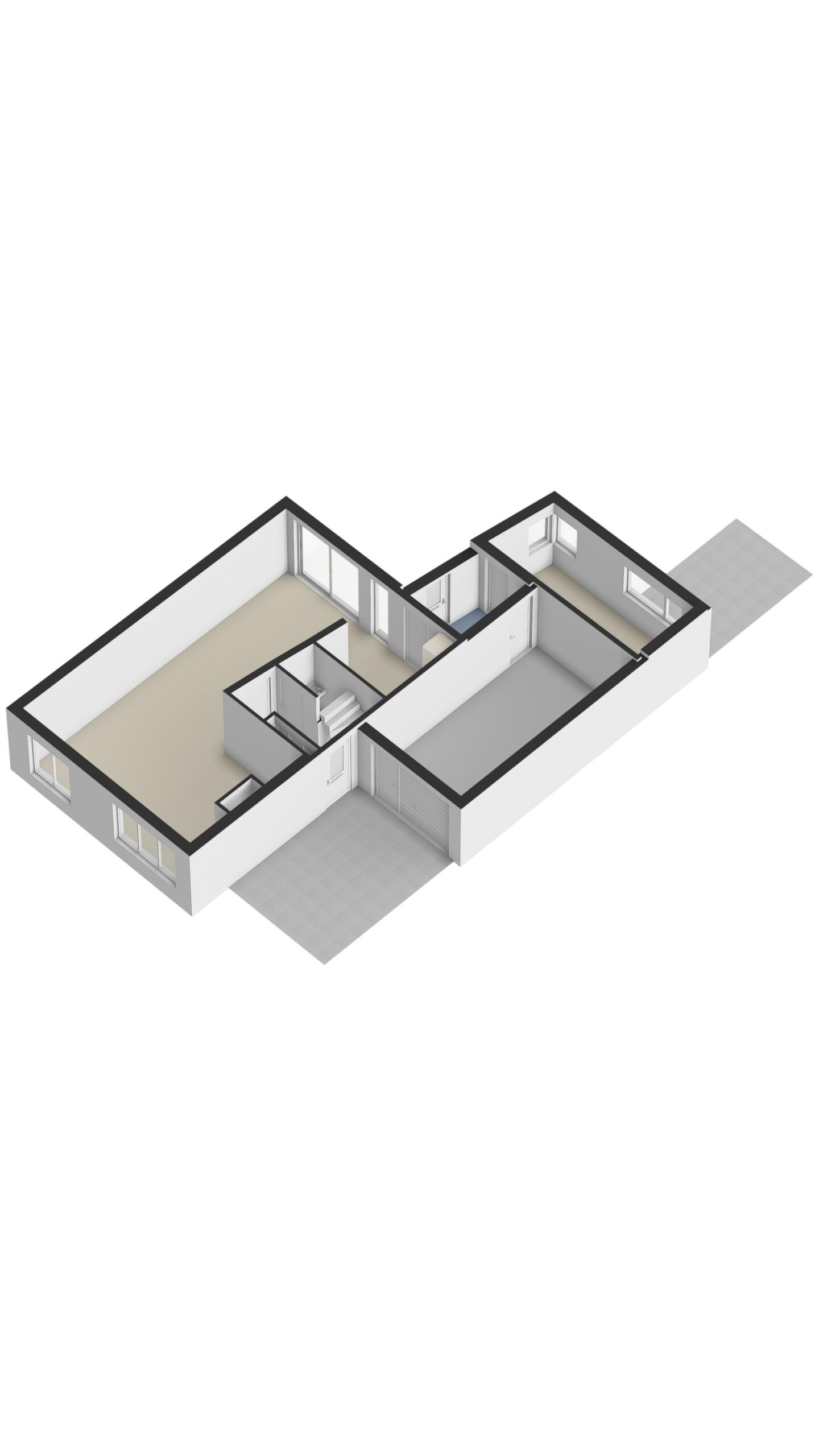 Inpandig bereikbare garage met tegelvloer en een kantel- en loopdeur naar de oprit.