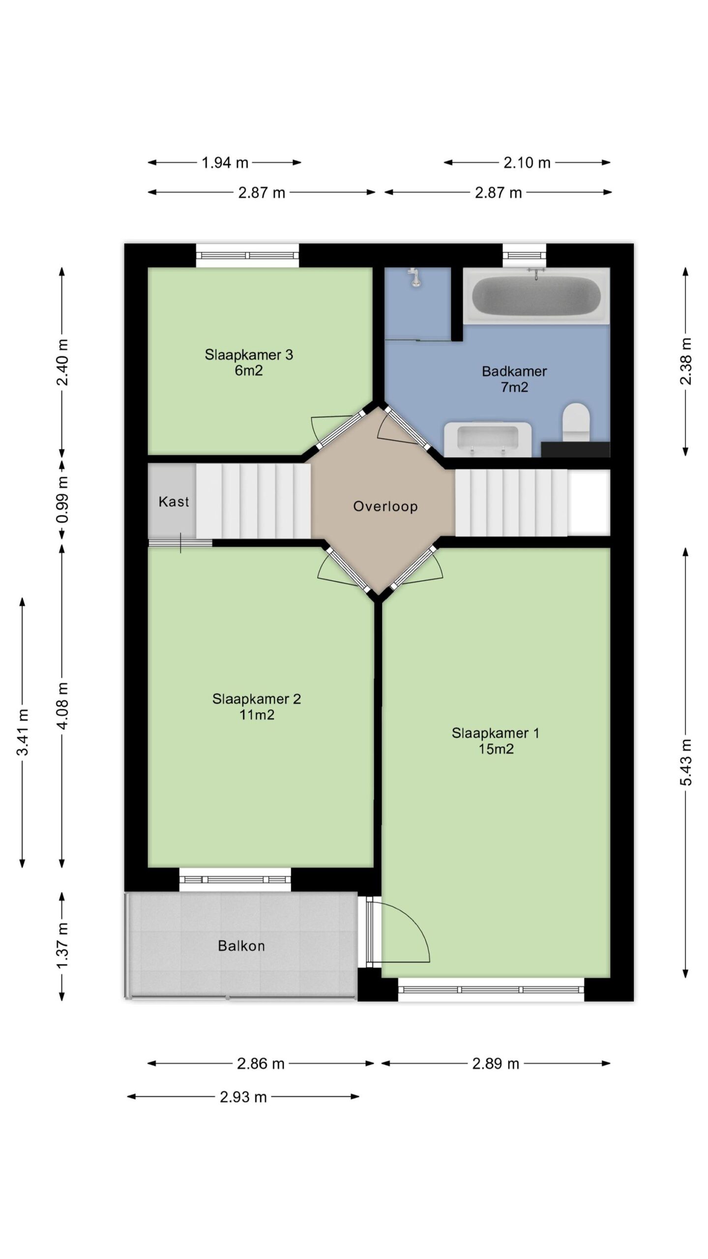 Voorslaapkamer circa 15m² met twee vaste kasten, rolluiken en een deur naar het balkon, voorslaapkamer circa 11m² met vaste kast en een achterslaapkamer circa 6m². Alle slaapkamers zijn voorzien van een laminaatvloer en strakke wandafwerking.