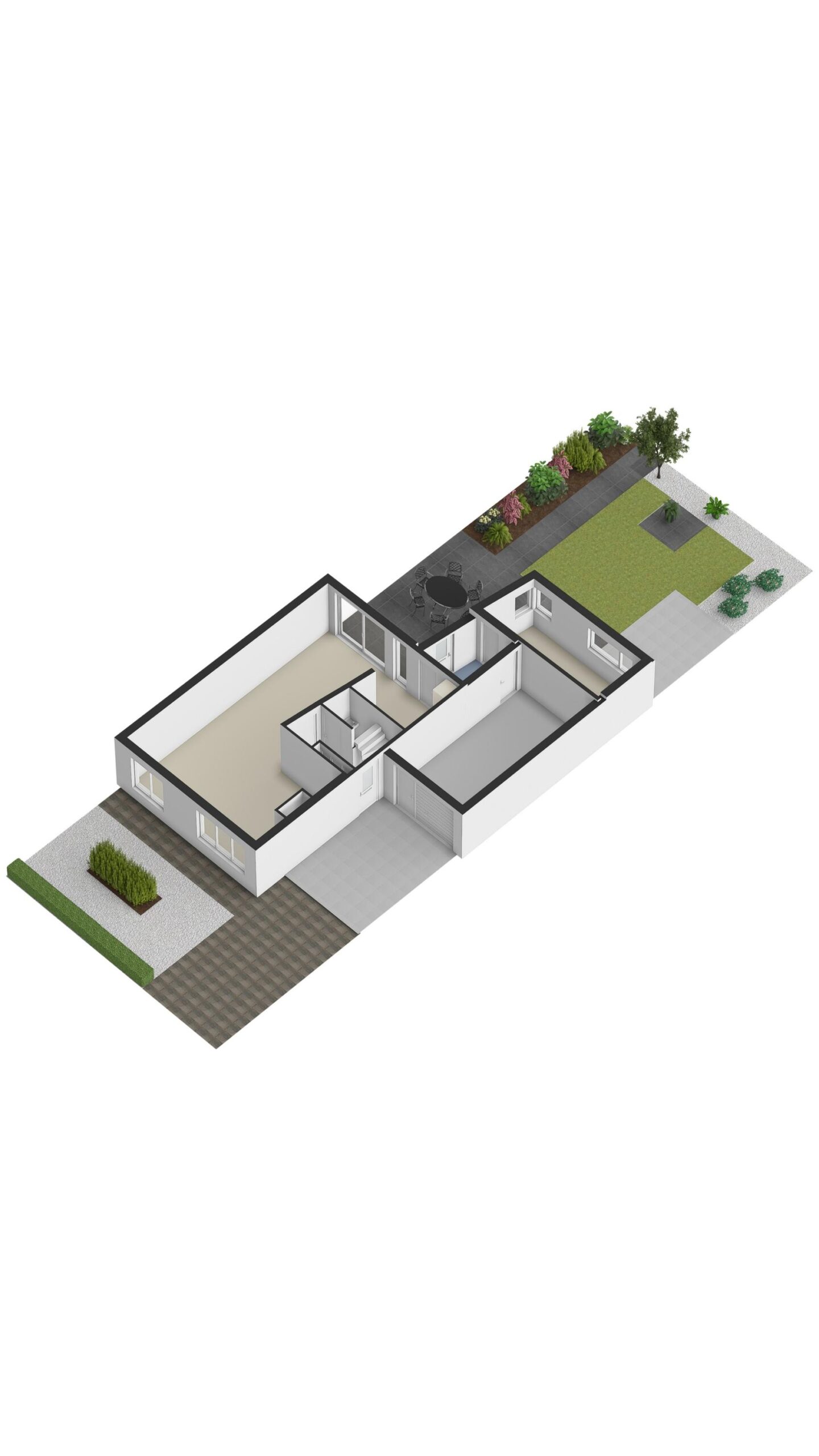 Onderhoudsvriendelijke voortuin. De diepe oprit met carport geeft toegang tot de entree van de woning en de garage.