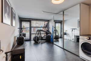Vanuit de hal is een 2e multifunctionele ruimte circa 16 m² te bereiken met laminaatvloer, strak stucwerk wand- en plafondafwerking en de aansluitingen voor de wasapparatuur. Deze ruimte is momenteel in gebruik als wasruimte en sportkamer.