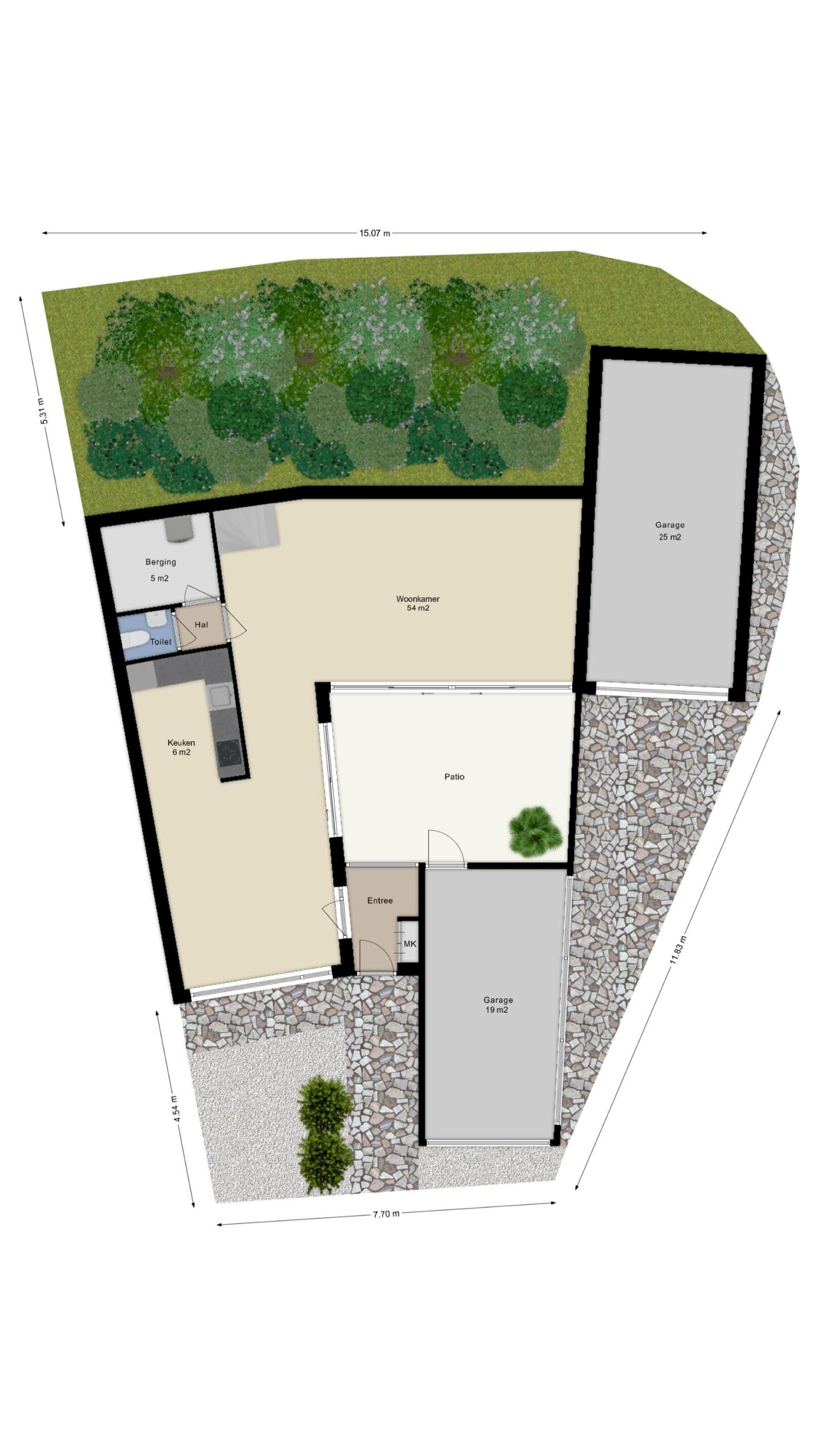 Een extra pluspunt is de mogelijkheid om vanuit de hal een directe doorgang naar één van de garages te realiseren. Hierdoor ontstaat een multifunctionele ruimte die perfect geschikt is als kantoor aan huis, speelkamer of zelfs slaapkamer.