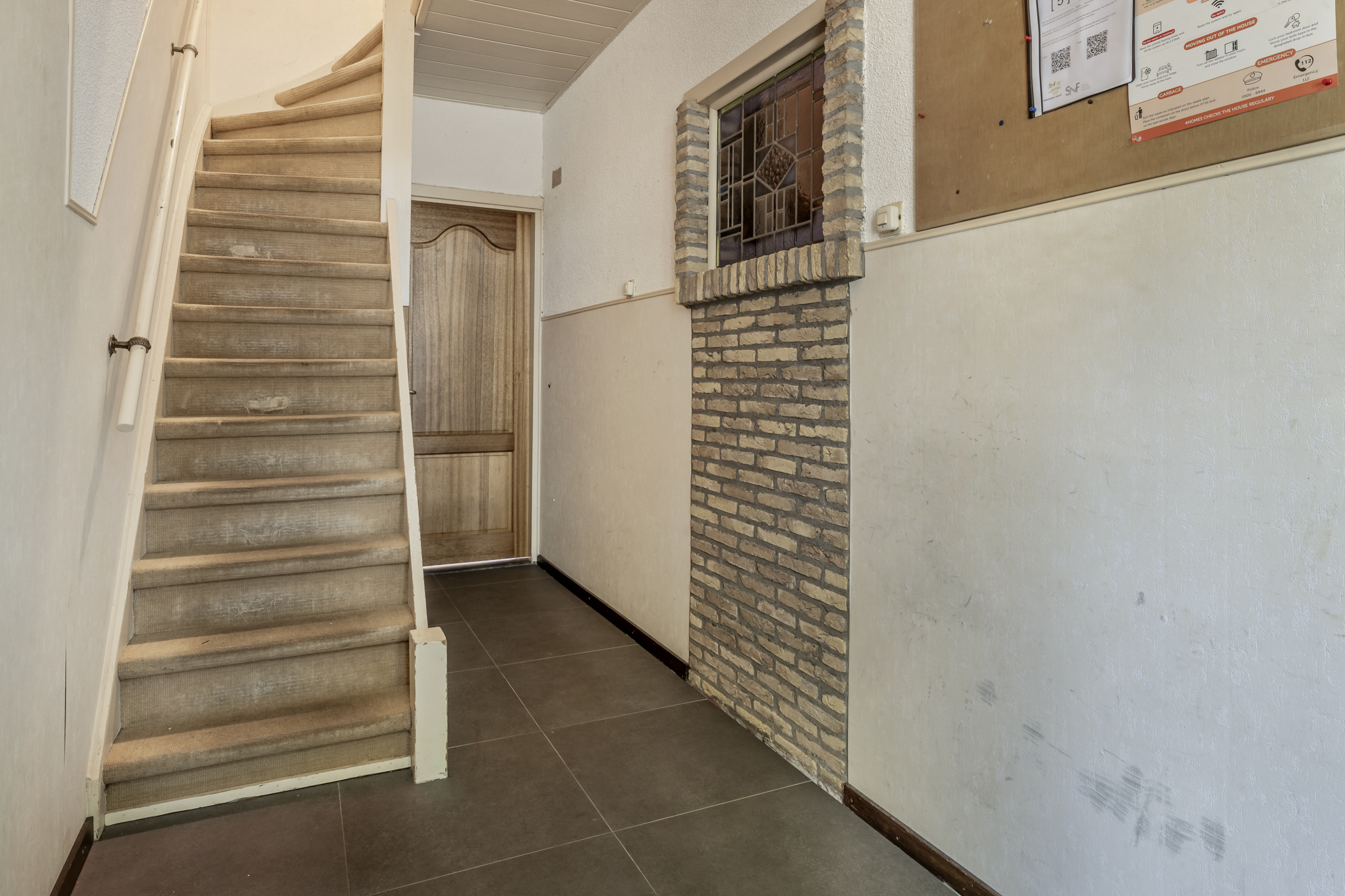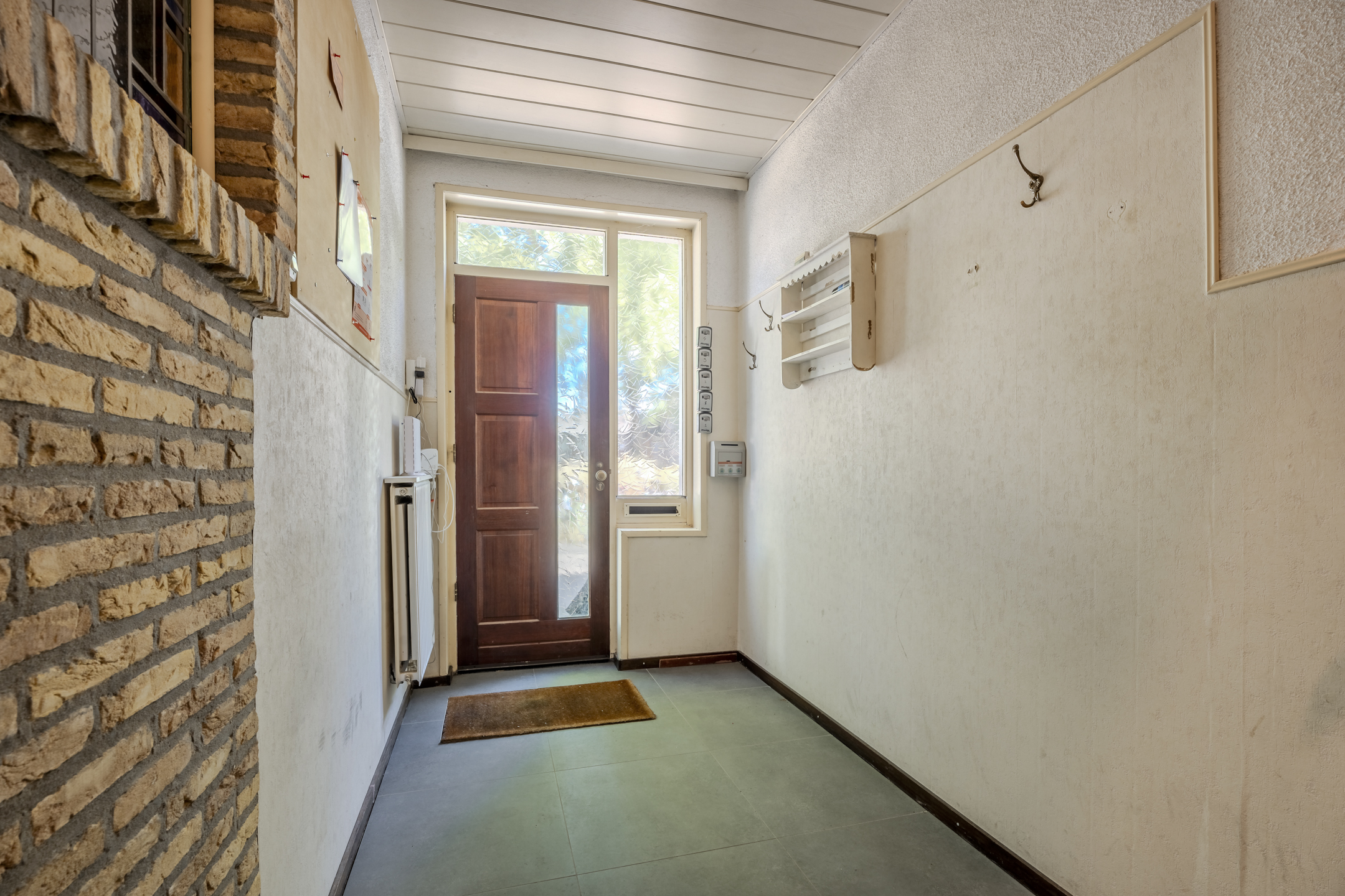 Entree, hal met tegelvloer en een trapkast met meterkast.