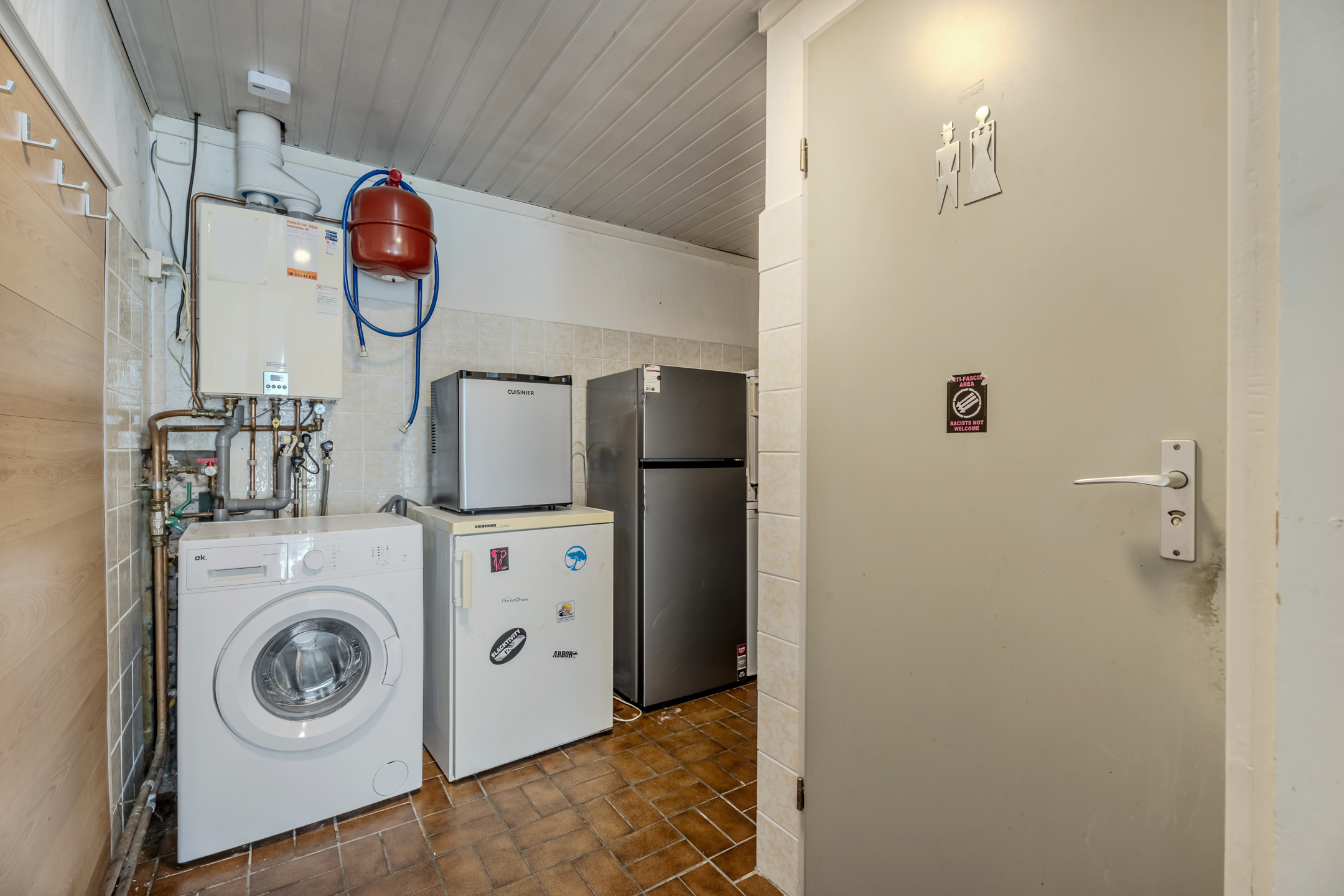 Praktische bijkeuken met de aansluitingen voor de wasapparatuur en de c.v. combi ketel (Remeha Avanta).