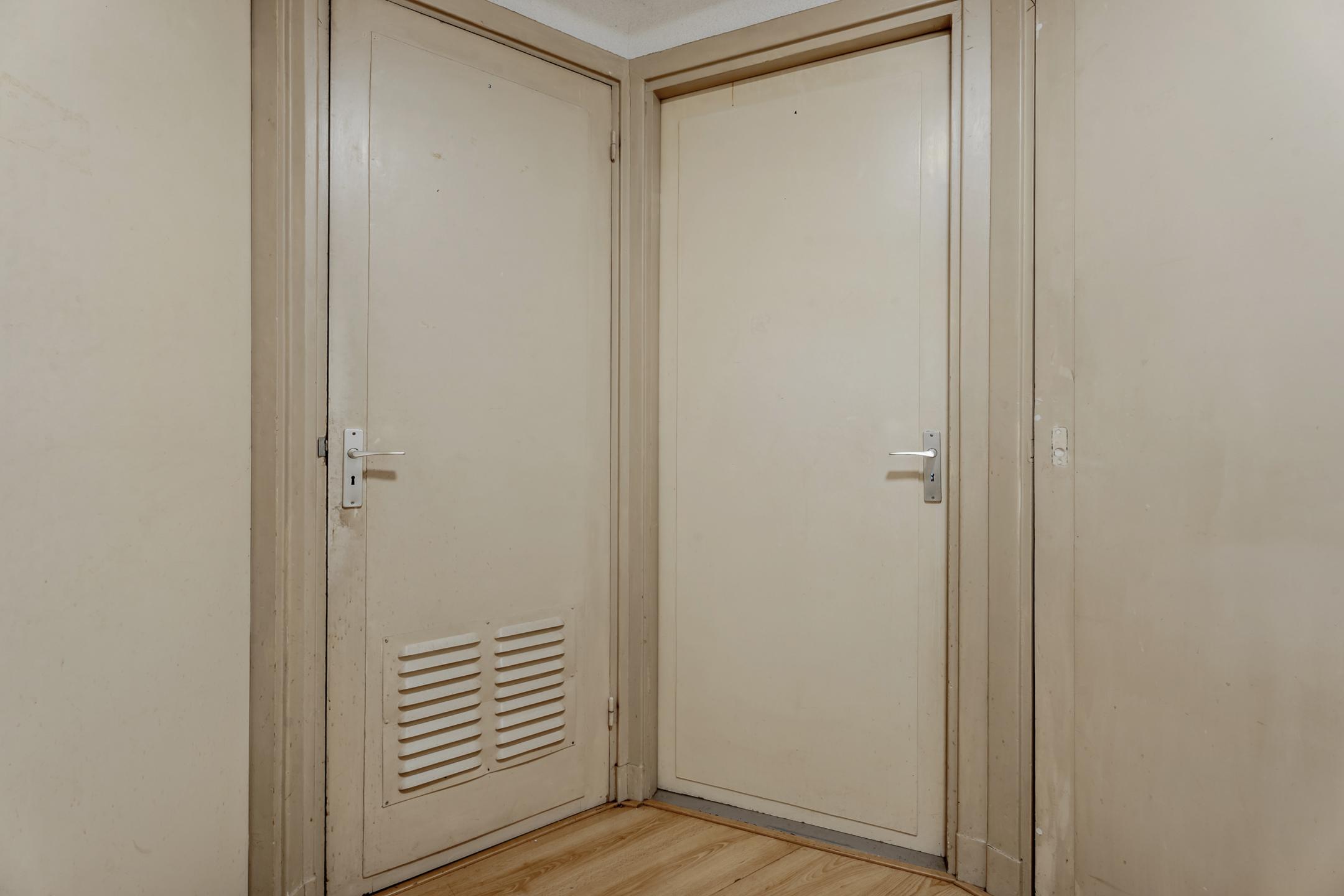Overloop met laminaatvloer en die toegang geeft tot twee grote slaapkamers (voorheen drie slaapkamers) en de badkamer.