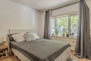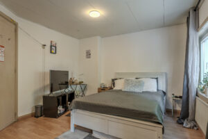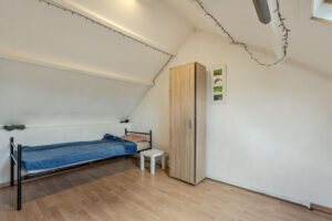 Voorslaapkamer circa 14m² (voorheen twee slaapkamers) en een achterslaapkamer circa 11m² met trapkast. Beide slaapkamers zijn voorzien van een laminaatvloer.