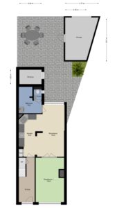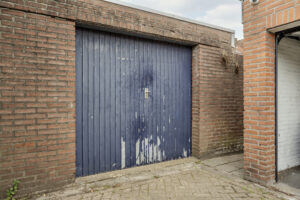 Vrijstaande stenen garage circa 15m² met kanteldeur.