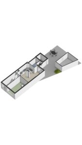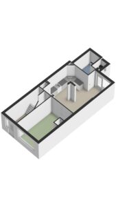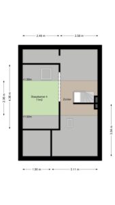 De woonkamer is op dit moment gesplitst met aan de voorzijde een werk-/ slaapkamer circa 16m². Als deze ruimte bij de woonkamer met open keuken wordt betrokken dan ontstaat er een totale leefruimte van maar liefst circa 42m².