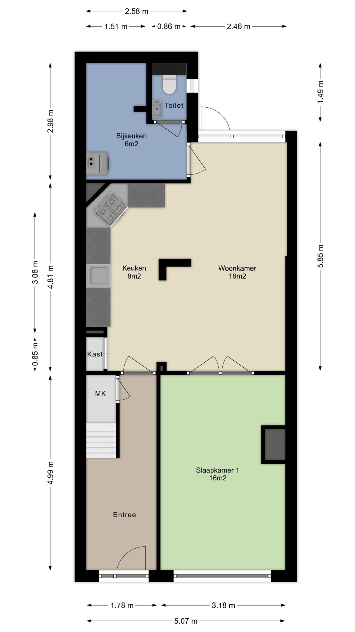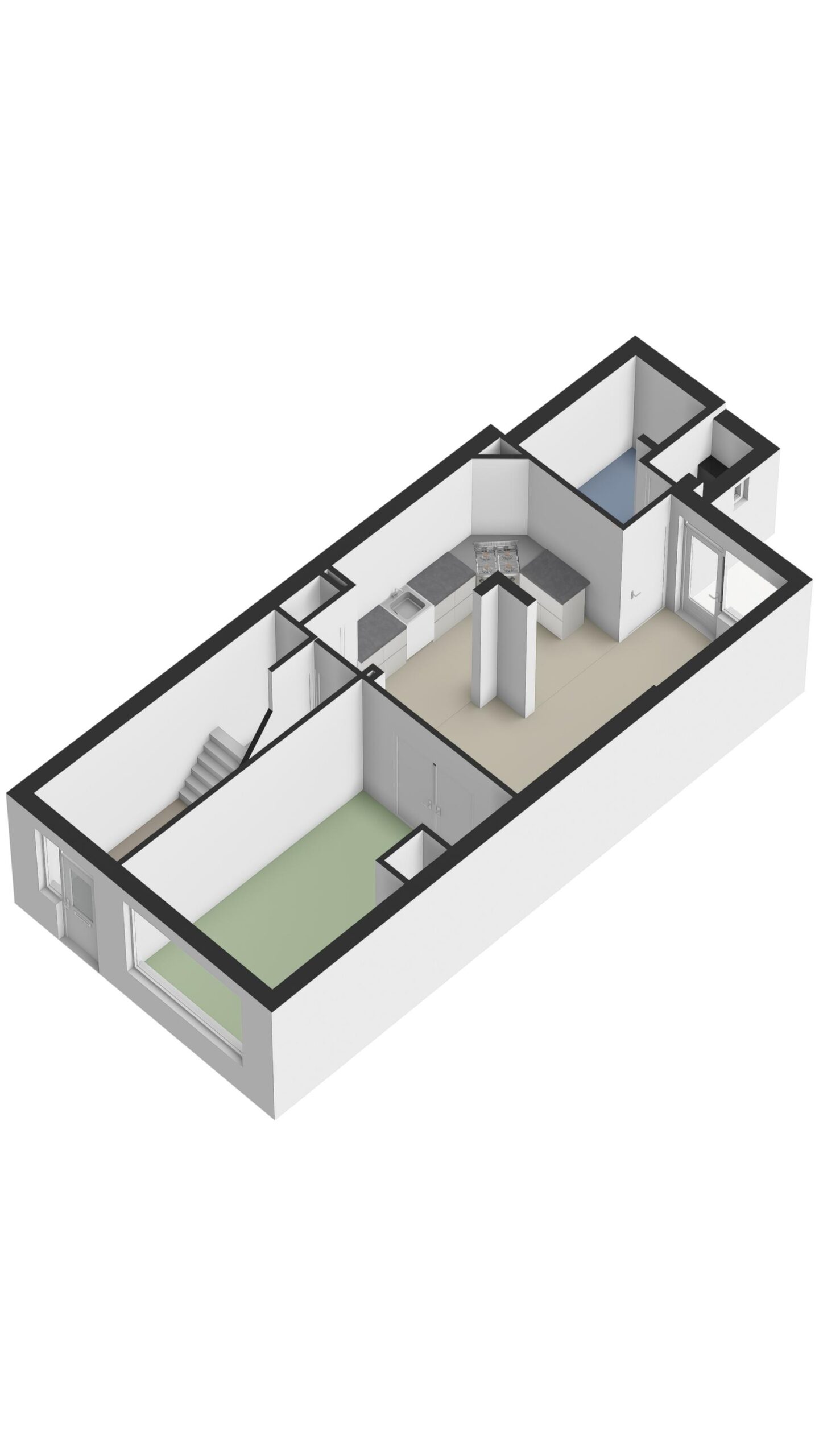 De hal geeft toegang tot de keuken/ woonkamer en trapopgang naar de eerste verdieping.