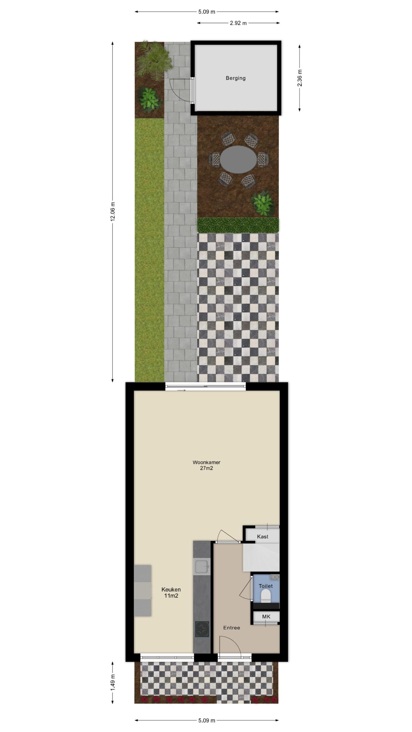 • Onderhoudsvriendelijke achtertuin met berging.