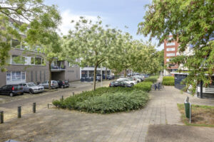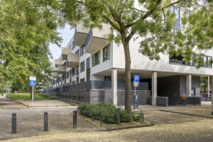 Onder het complex bevindt zich een ruime parkeergarage. Hier bevinden zich de bergingen en afsluitbare garages.