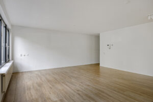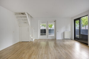 Sfeervolle en ruime woonkamer circa 38m² (inclusief keuken) met vele raampartijen en openslaande deuren naar het ruime dakterras gelegen op het zuiden.