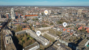 De ligging van het complex is ideaal: u loopt zo het Dwaalgebied in en de vijfsprong, Nieuwlandstraat en het Centraal Station. Het bruisende stadscentrum met al haar (winkel)voorzieningen, het Pieter Vreedeplein, de bioscoop en de Schouwburg liggen tevens op een paar minuten afstand. Daarnaast zijn de hippe Piushaven, het Spoorpark, Tilburg University en diverse uitvalswegen tevens nabij gelegen. Een centrale en toplocatie dus, maar wel in een rustige omgeving!
