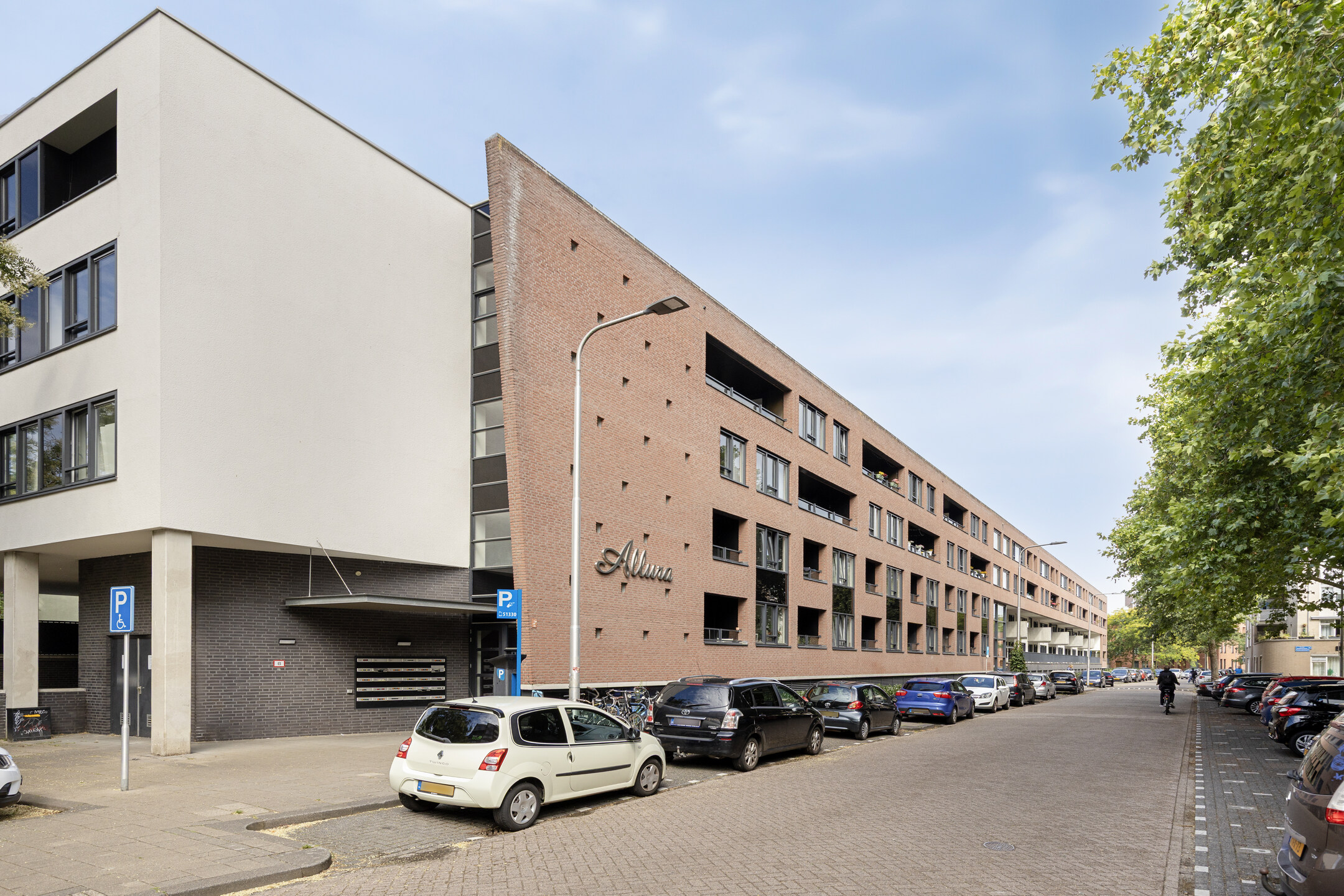 Onder het complex bevindt zich een ruime parkeergarage. Hier bevinden zich de bergingen en afsluitbare garages.