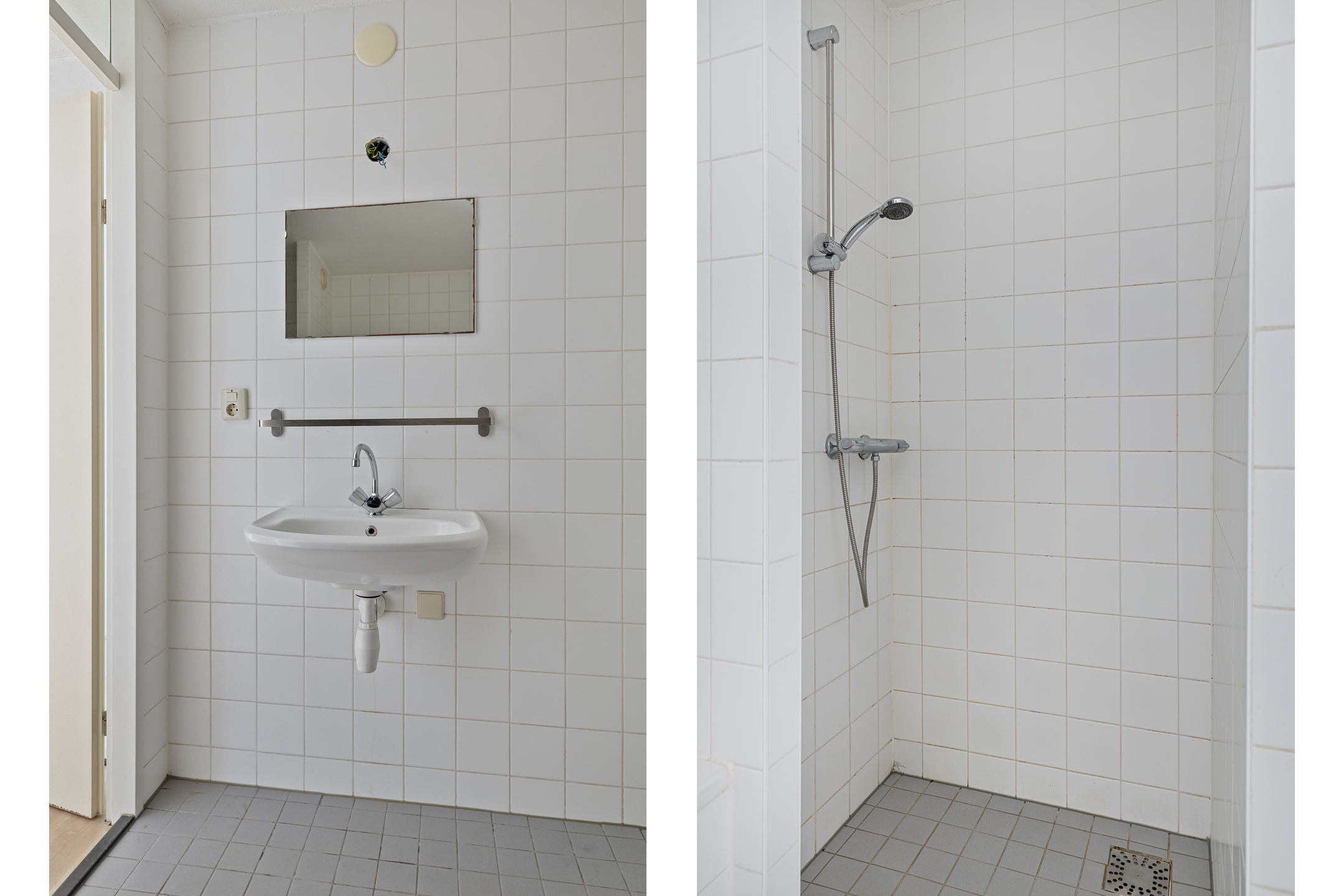 Een gang geeft daarnaast toegang tot een separaat, gedeeltelijk betegeld toilet met fontein.