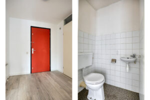 Entree, hal met laminaatvloer en een nette toiletruimte. De hal biedt toegang tot de woonkamer, slaapkamers en de badkamer.