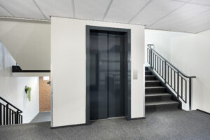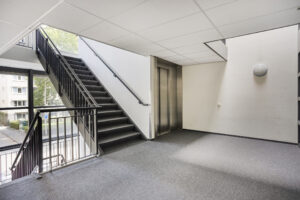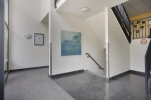 Centrale entree met videofoon, brievenbussen, lift en trappenhuis.