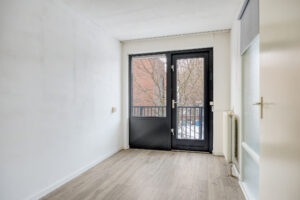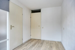Er zijn twee slaapkamers: een van circa 15m² en een kleinere kamer van circa 9m² met toegang tot het balkon gelegen op het westen. Beide kamers zijn voorzien van een nette laminaatvloer en zijn voorzien van zonwering (te besturen in de kleinere kamer).