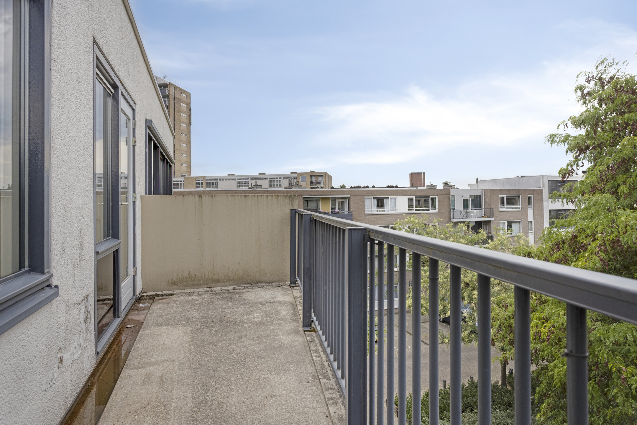 Ruim balkon circa 9m² op het westen. Het balkon is aan de binnentuin gelegen.