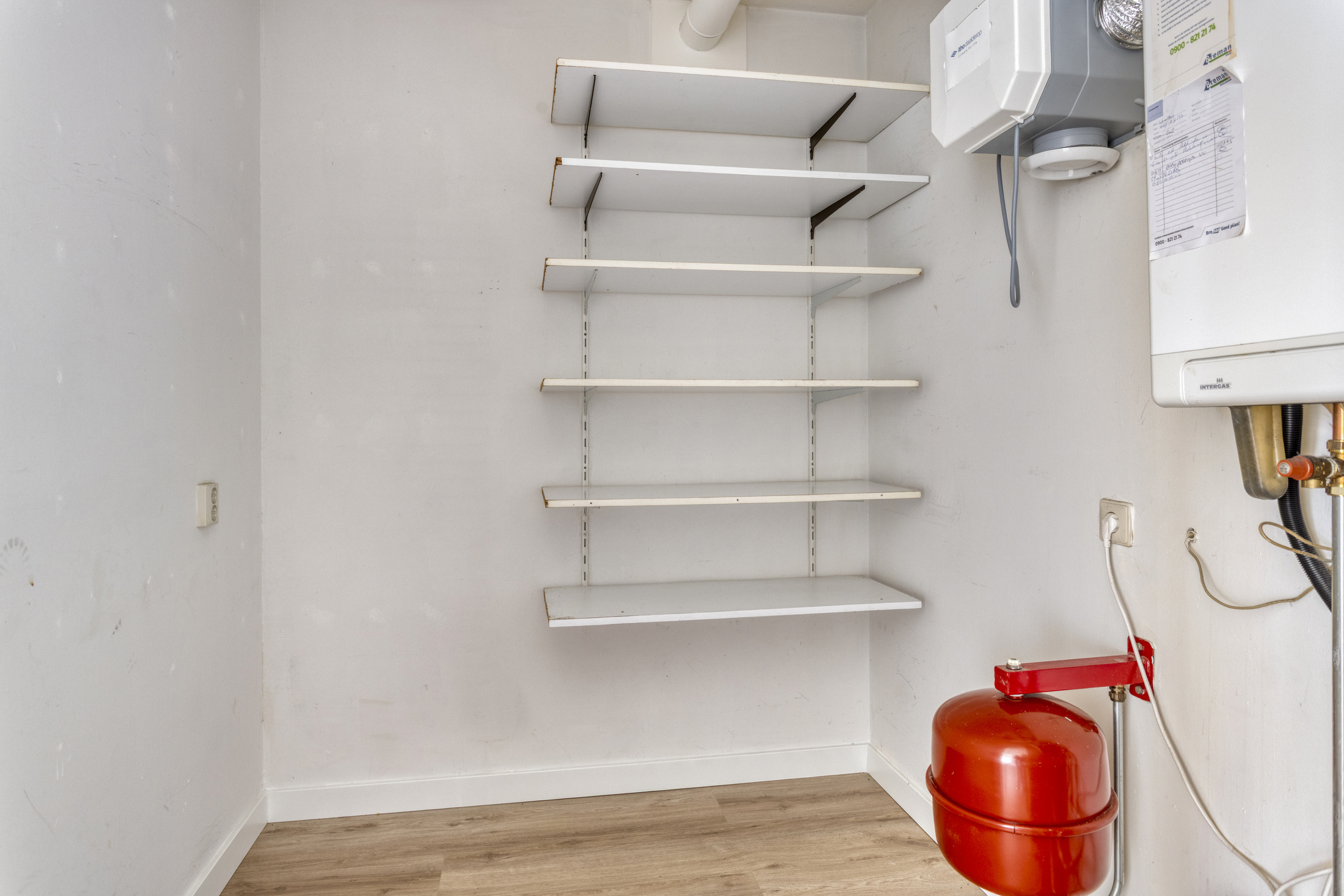 Inpandige berging/ bijkeuken met de c.v. combi ketel en de unit voor de mechanische ventilatie.