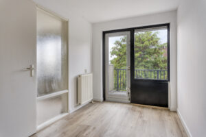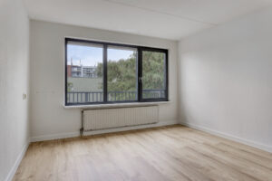 Slaapkamer circa 15m² en een slaapkamer circa 9m². Beide slaapkamers zijn voorzien van een laminaatvloer en bieden een fraai zicht op de binnentuin. De kleine slaapkamer is tevens vanuit de woonkamer te bereiken en geeft toegang tot het balkon.