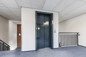 Centrale entree, keurige hal met videofooninstallatie, brievenbussen, liftinstallatie en het trappenhuis.